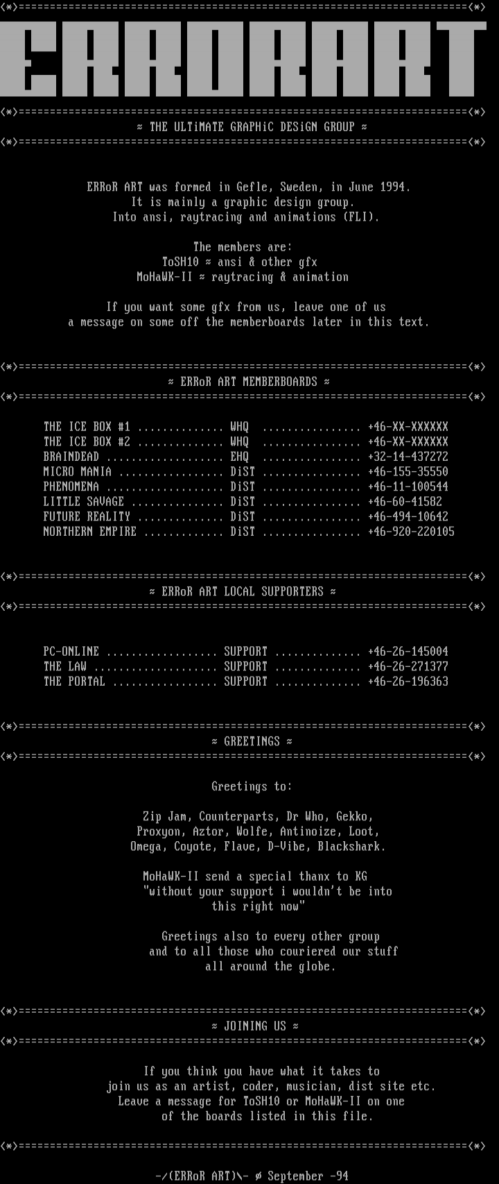 ERRoR ART was formed in Gefle, Sweden, in June 1994.