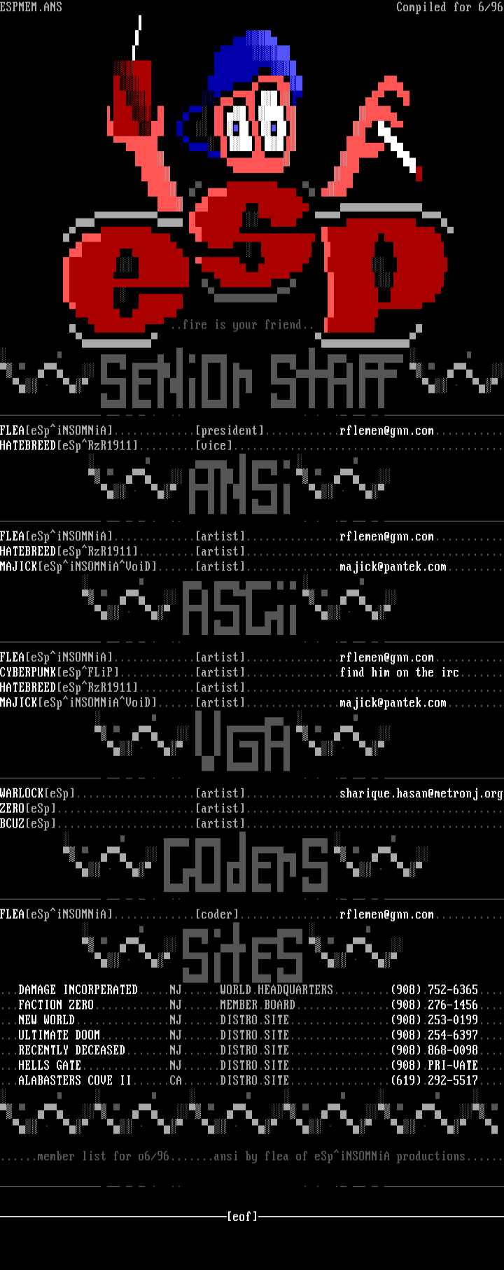 ......member list for o6/96.......ansi by flea of eSpiNSOMNiA p