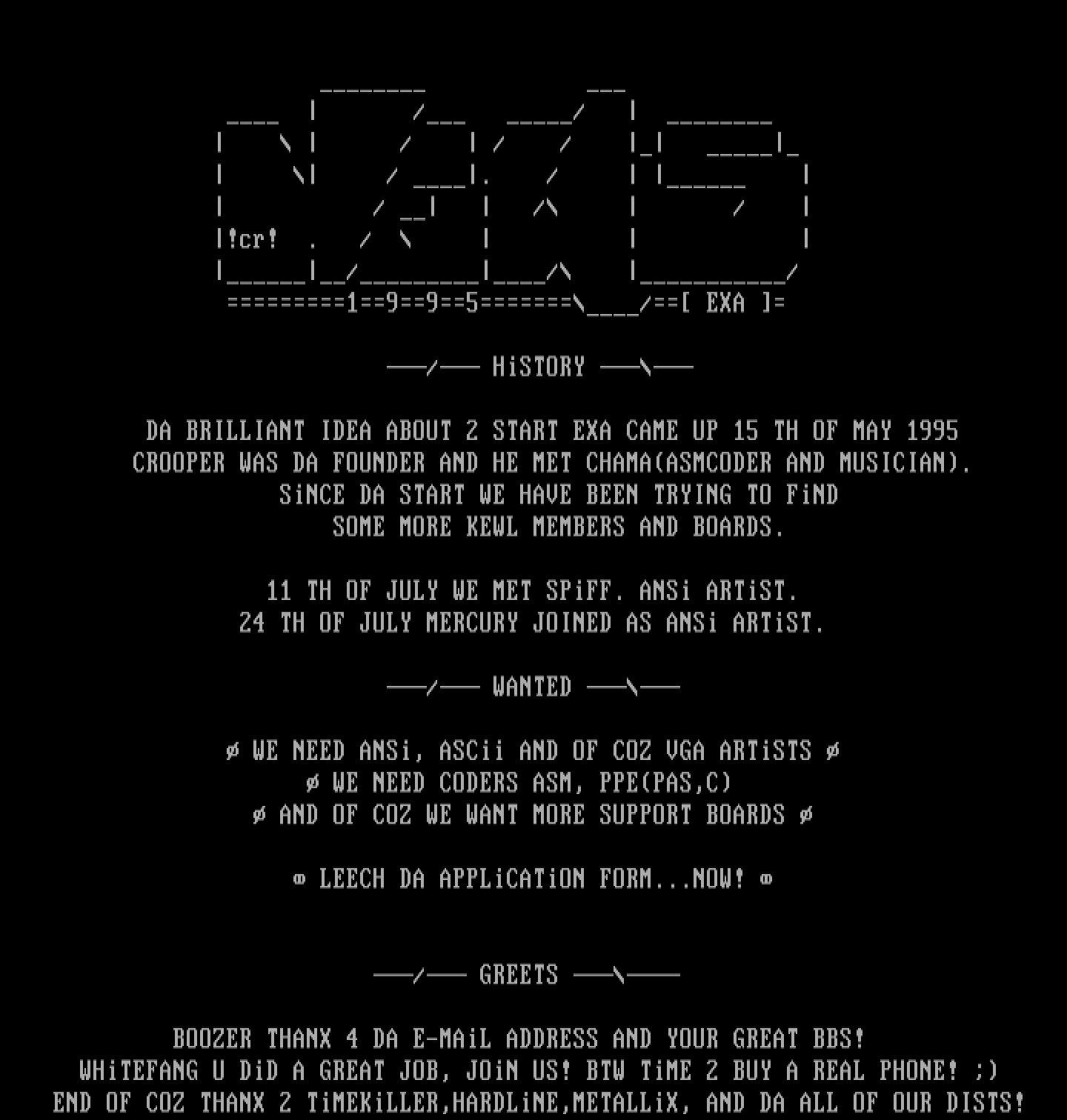 WE NEED ANSi, ASCii AND OF COZ VGA ARTiSTS