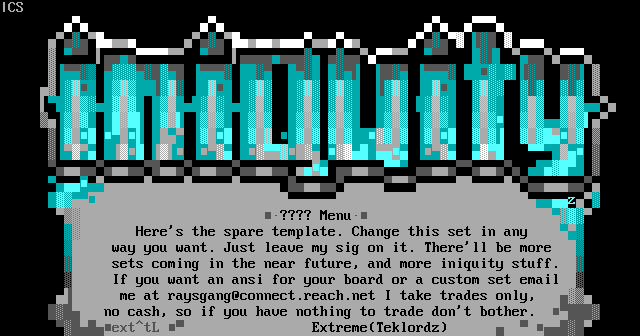 bway you want. Just leave my sig on it. Therell be more csets coming in the near future, and more iniquity stuff. dIf you want an ansi for your board or a custom set email
