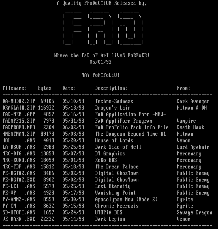 FADPROFO.NFO 2204 06/02/93 FaD ProFolio Pack Info File Death Hawk