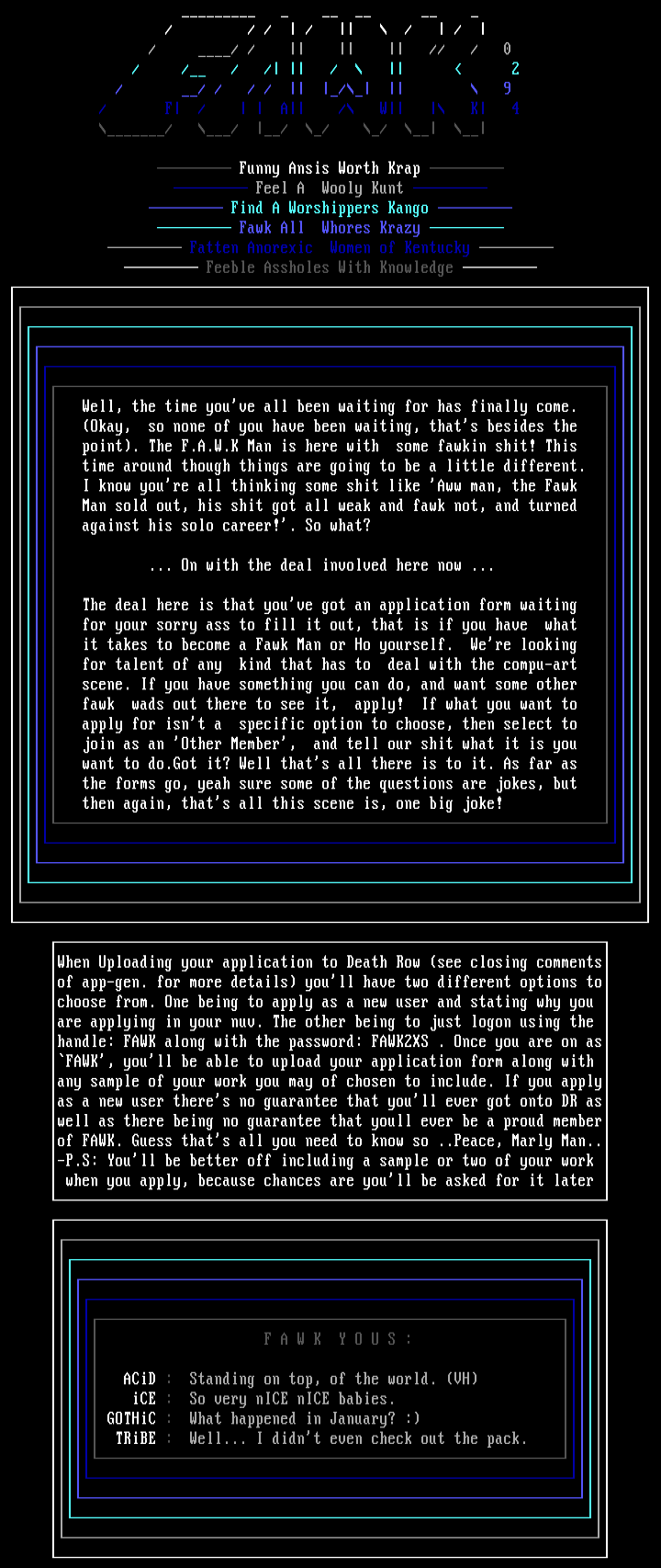of FAWK. Guess thats all you need to know so ..Peace, Marly Man..