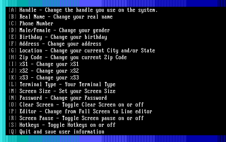 A Handle - Change the handle you use on the system.