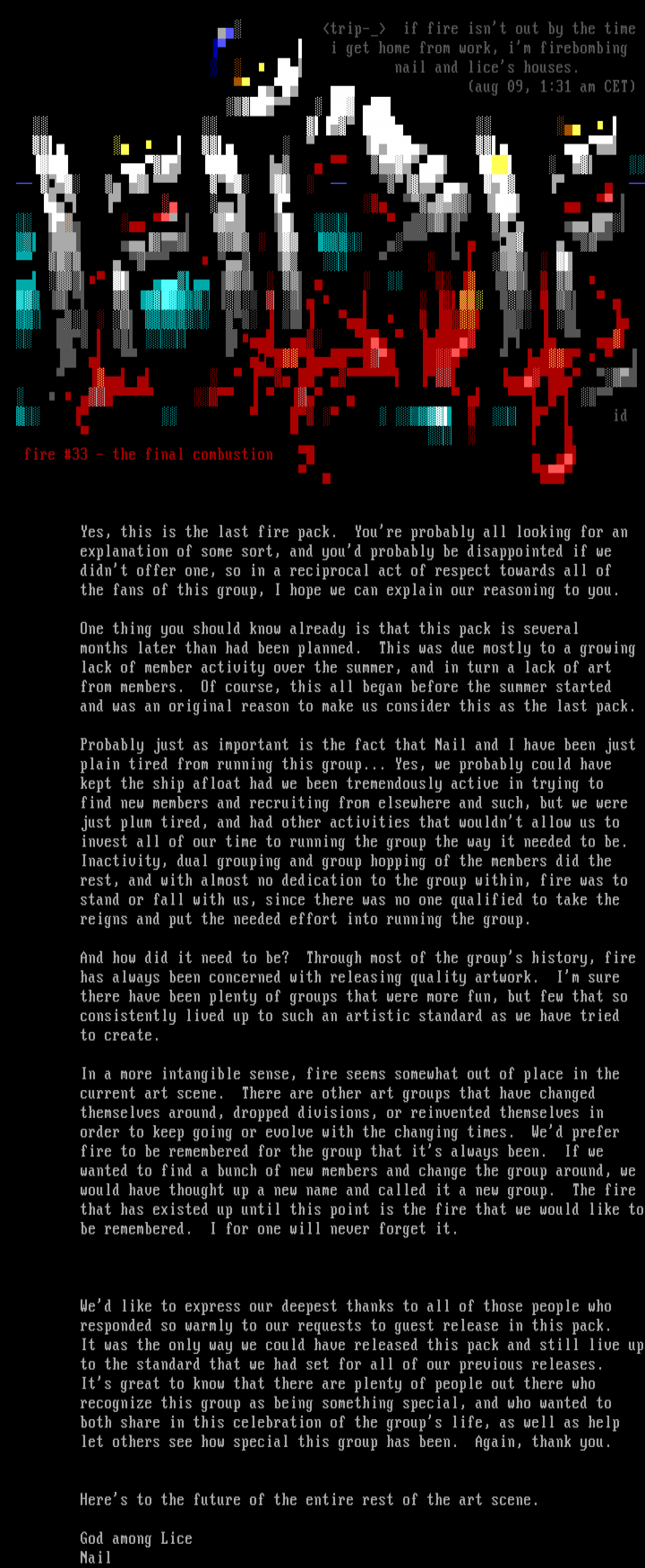 that has existed up until this point is the fire that we would like to be remembered. I for one will never forget it.