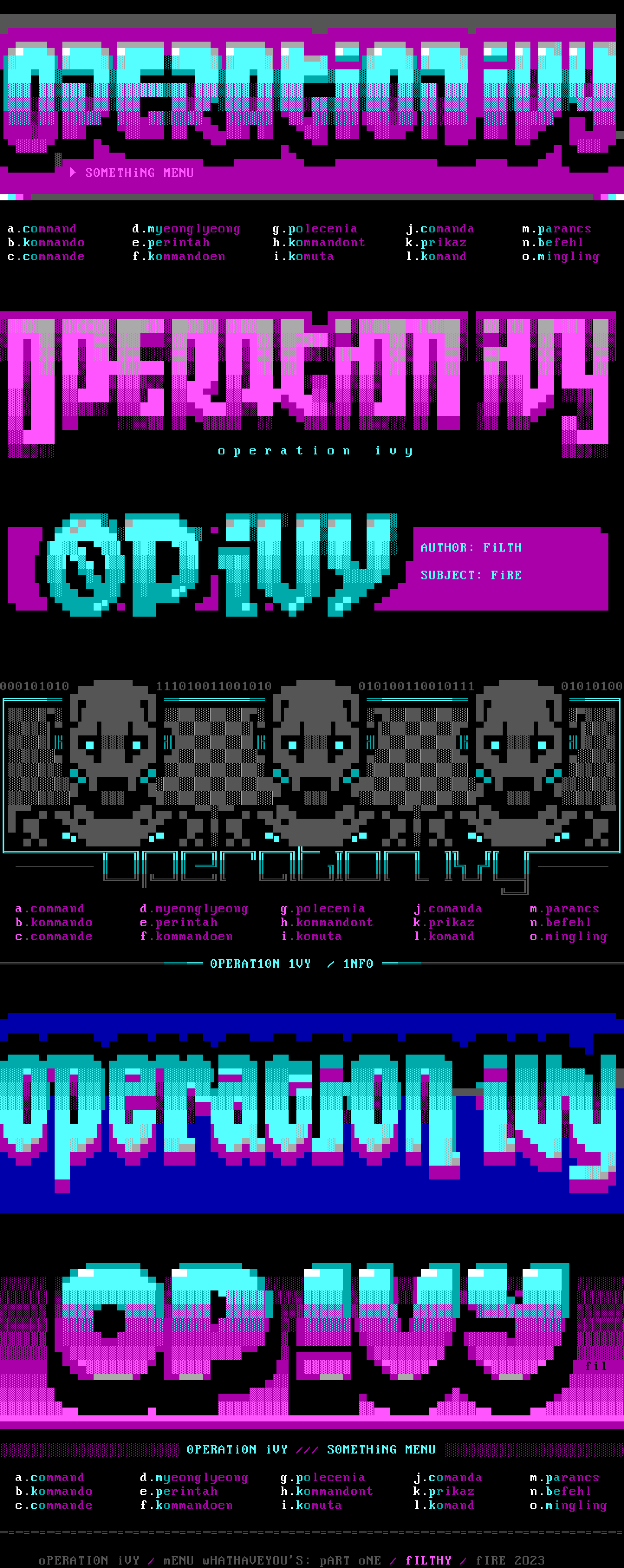 oPERATI0N iVY / mENU wHATHAVEYOUS: pART oNE / fILTHY / fIRE 2O23