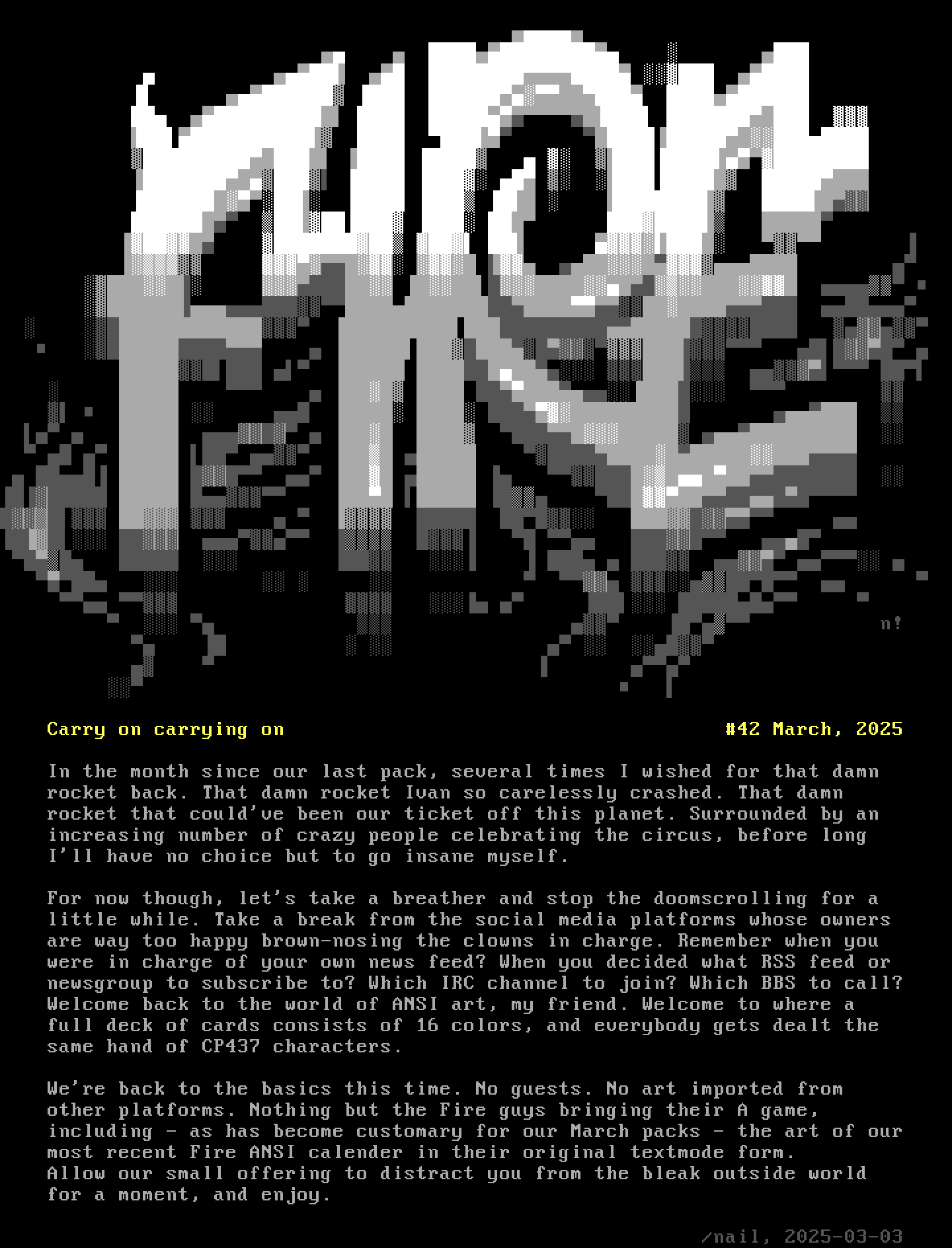 Welcome back to the world of ANSI art, my friend. Welcome to where a
