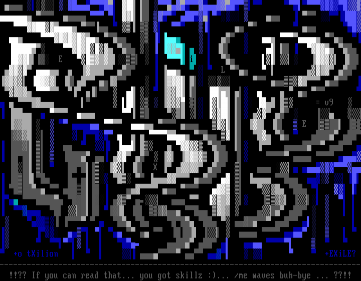 -------------------------------------------------------------------------------- !!?? If you can read that... you got skillz :... /me waves buh-bye ... ??!!
