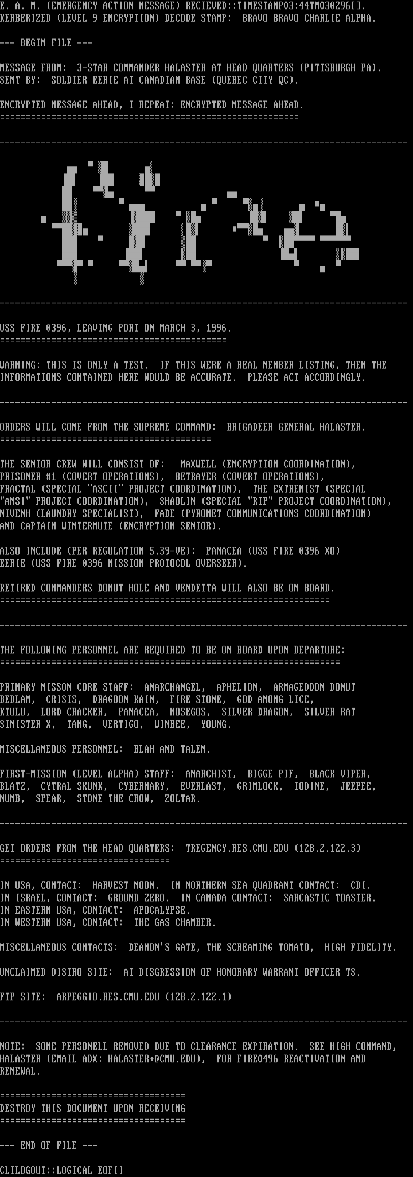 E. A. M. EMERGENCY ACTION MESSAGE RECIEVED::TIMESTAMP03:44TM030296.