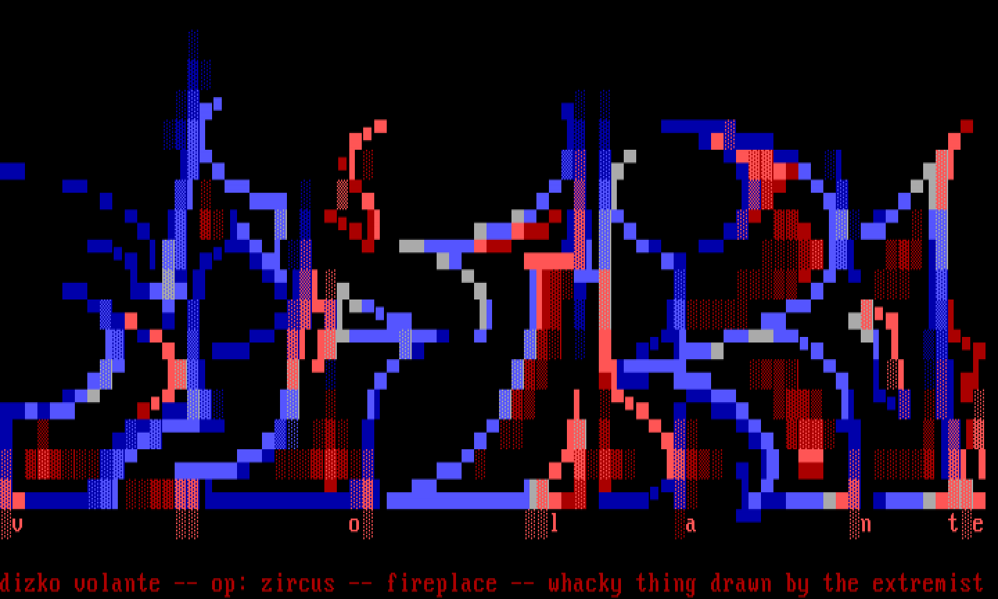 dizko volante -- op: zircus -- fireplace -- whacky thing drawn by the extremist