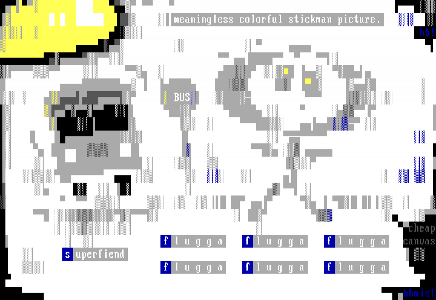 meaningless colorful stickman picture. hb! BUS i suck.