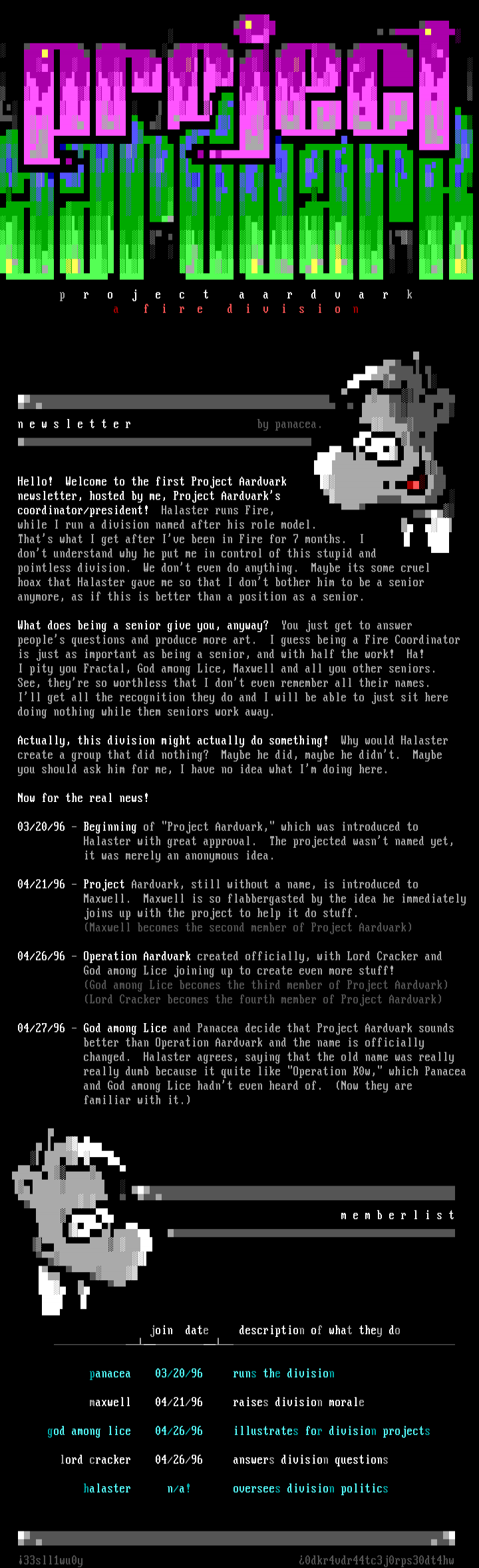 04/26/96 - Operation Aardvark created officially, with Lord Cracker and