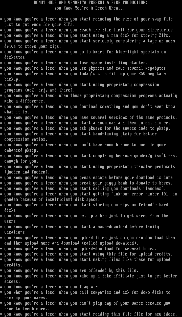 * you know youre a leech when you todays zips fill up your 250 meg tape