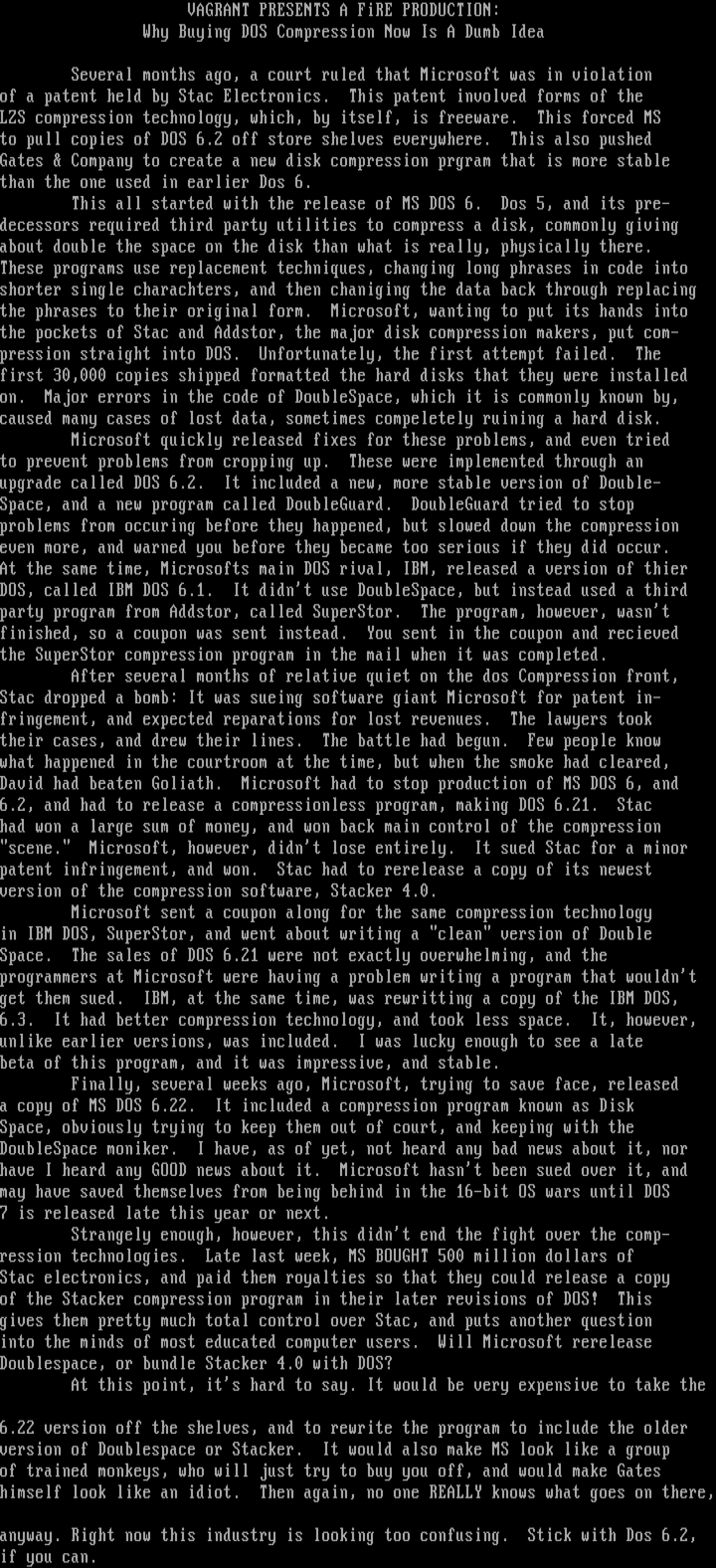 6.2, and had to release a compressionless program, making DOS 6.21. Stac