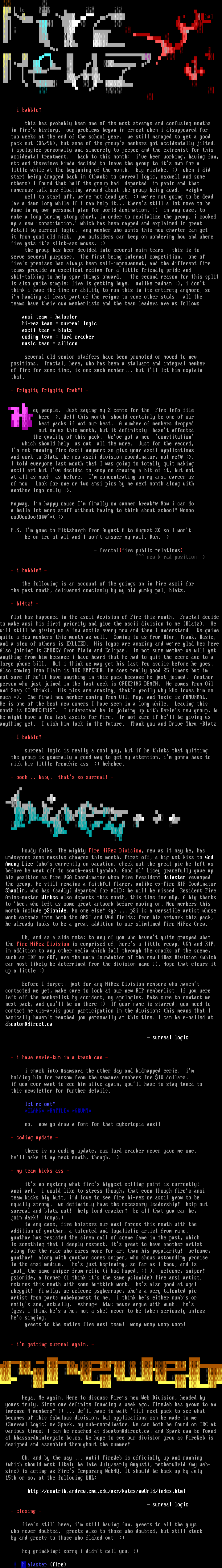Alot has happened in the ascii devision of Fire this month. Fractal decide