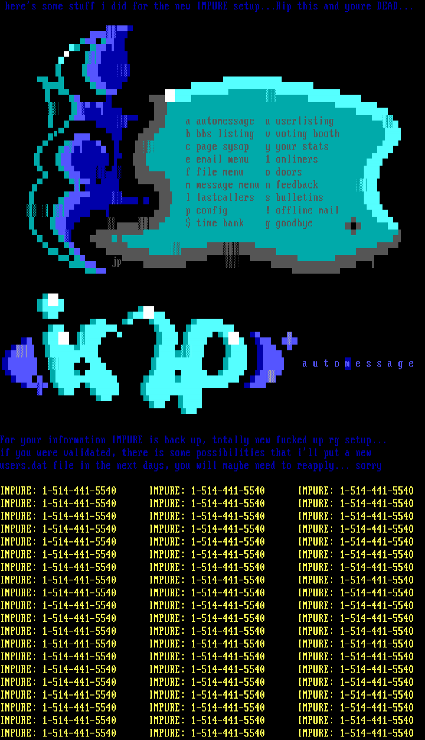For your information IMPURE is back up, totally new fucked up rg setup...