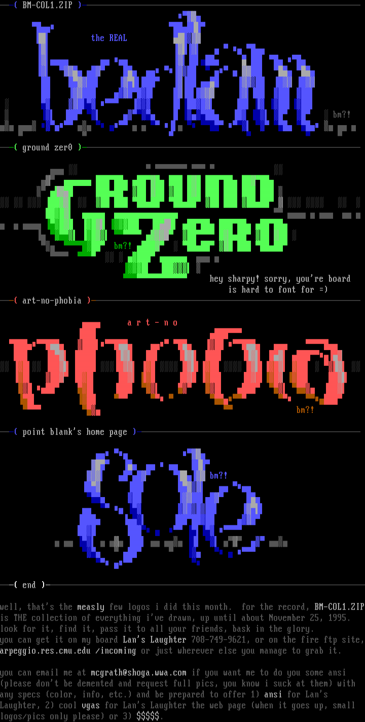 well, thats the measly few logos i did this month. for the record, BM-COL1.ZIPis THE collection of everything ive drawn, up until about November 25, 1995.