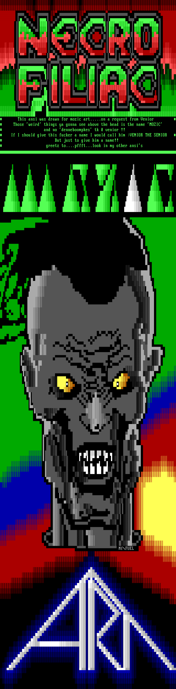This ansi was drawn for mozic art.....on a request from Venior Those weird things ya gonna see above the head is the name MOZIC