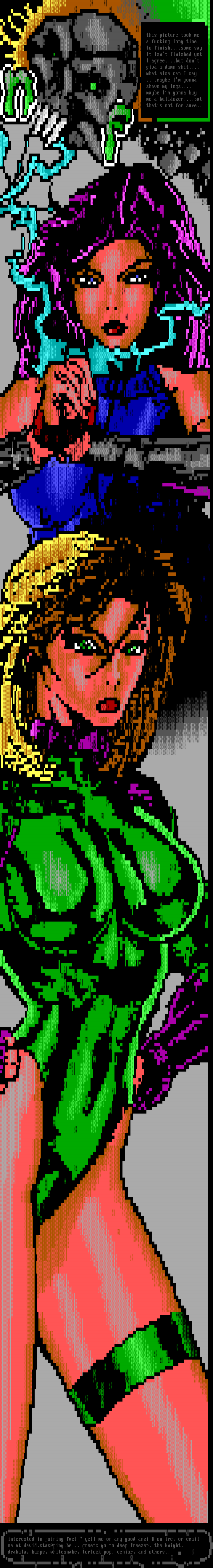 interested in joining fuel ? yell me on any good ansi on irc, or email me at david.stas@ping.be .. greetz go to deep freezer, the knight, drakula, burps, whitesnake, torlock pop, venior, and others..