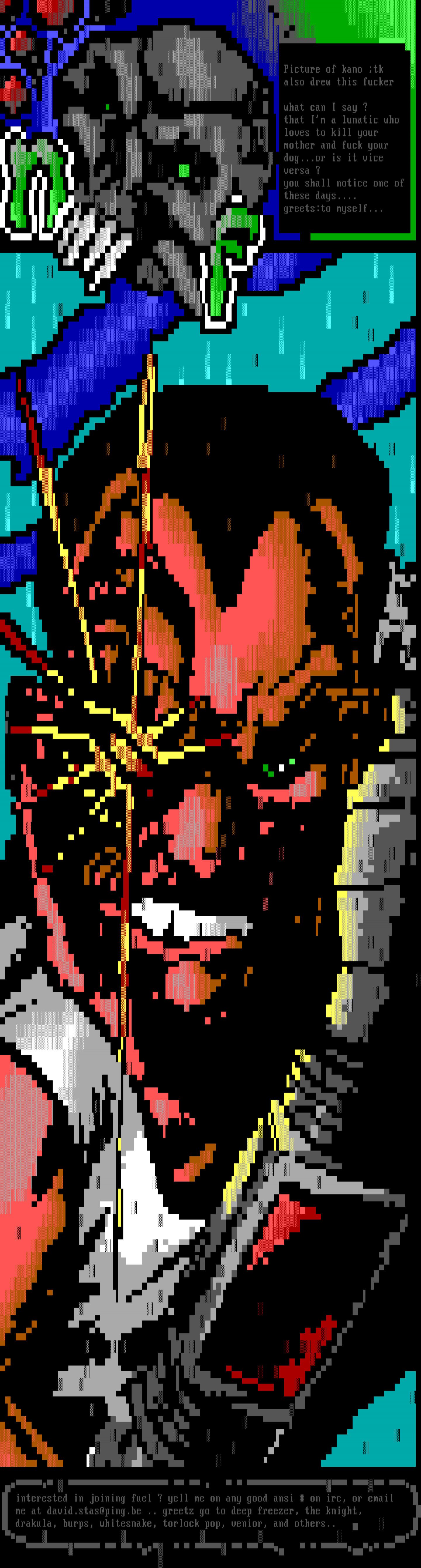 interested in joining fuel ? yell me on any good ansi on irc, or email me at david.stas@ping.be .. greetz go to deep freezer, the knight, drakula, burps, whitesnake, torlock pop, venior, and others..