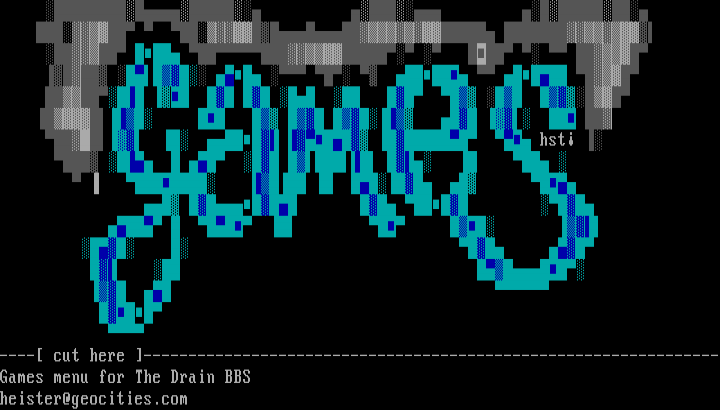 ---- cut here ----------------------------------------------------------------Games menu for The Drain BBS
