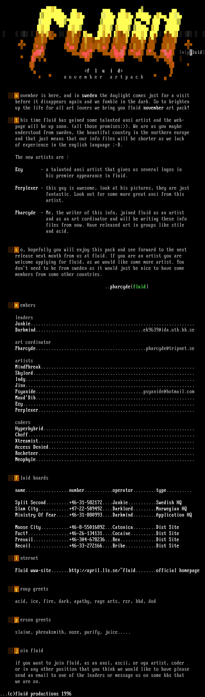 this time fluid has gained some talanted ansi artist and the web-
