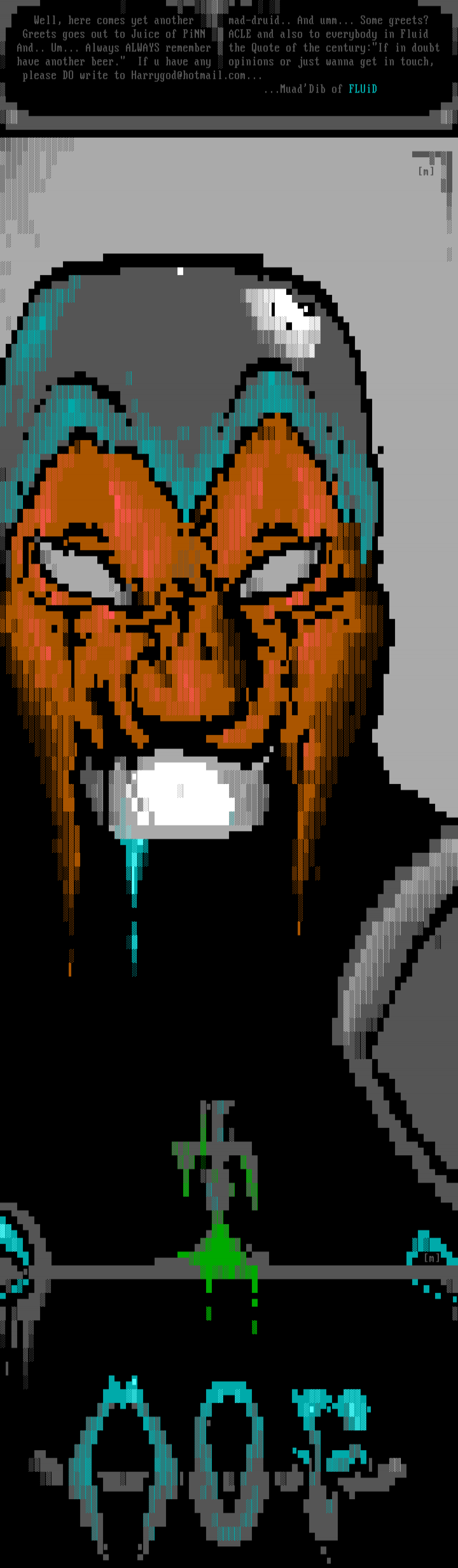 Well, here comes yet another mad-druid.. And umm... Some greets? Greets goes out to Juice of PiNN ACLE and also to everybody in Fluid And.. Um... Always ALWAYS remember the Quote of the century:If in doubt have another beer. If u have any opinions or just wanna get in touch,