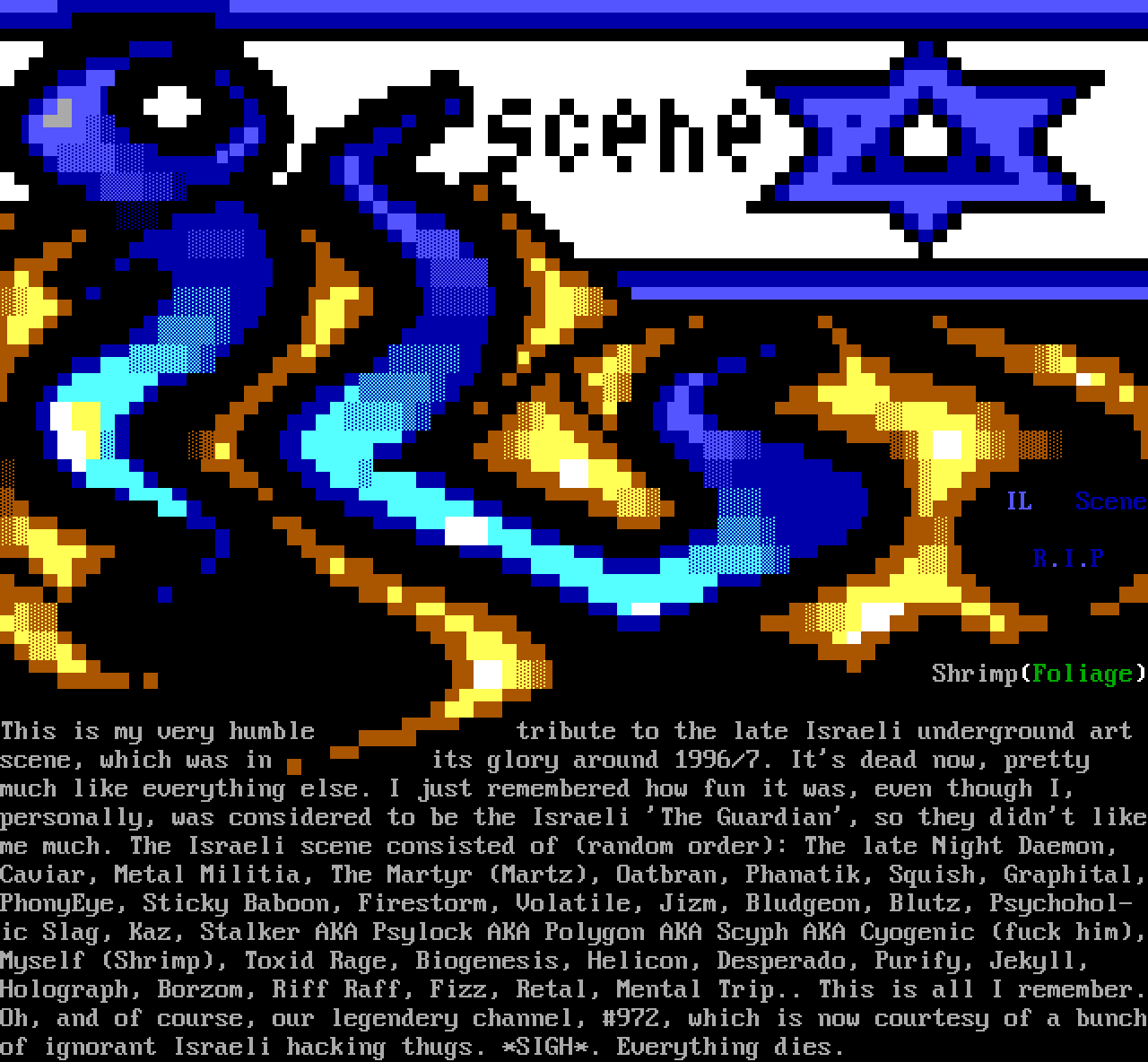 Holograph, Borzom, Riff Raff, Fizz, Retal, Mental Trip.. This is all I remember.Oh, and of course, our legendery channel, 972, which is now courtesy of a bunchof ignorant Israeli hacking thugs. *SIGH*. Everything dies.