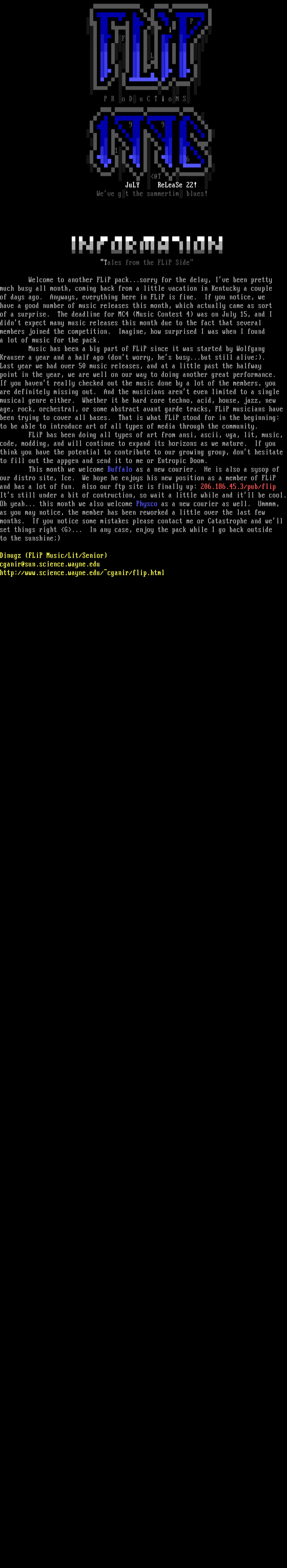 FLiP has been doing all types of art from ansi, ascii, vga, lit, music,