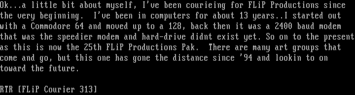 that was the speedier modem and hard-drive didnt exist yet. So on to the presentas this is now the 25th FLiP Productions Pak. There are many art groups that