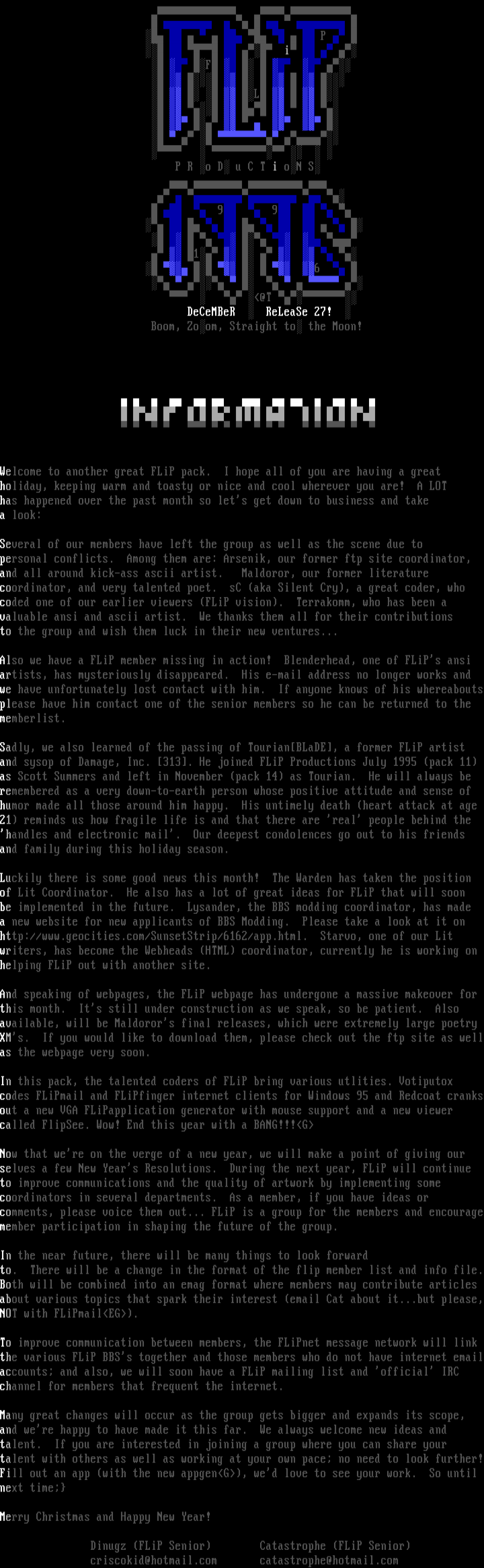 and sysop of Damage, Inc. 313. He joined FLiP Productions July 1995 pack 11