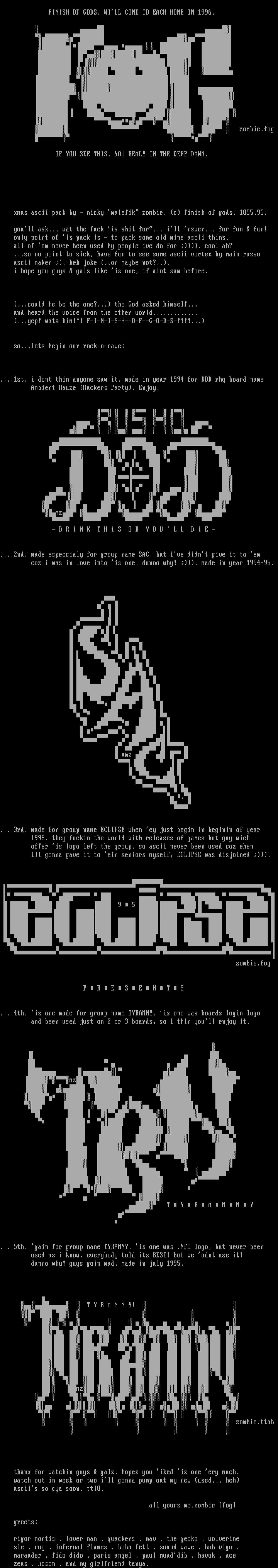 xmas ascii pack by - micky malefik zombie. c finish of gods. 1895.96.