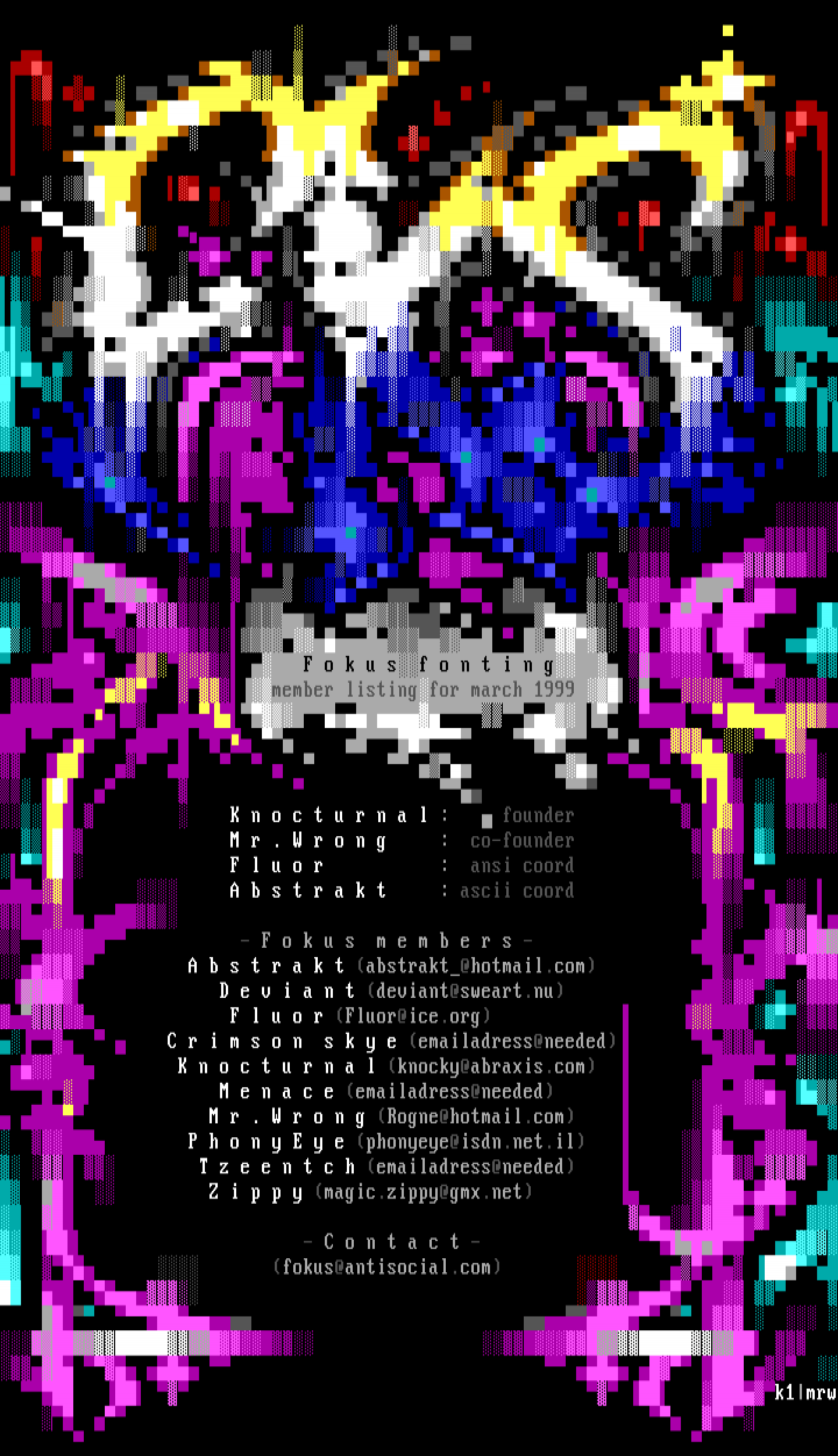 K n o c t u r n a l : founder M r . W r o n g : co-founder F l u o r : ansi coord