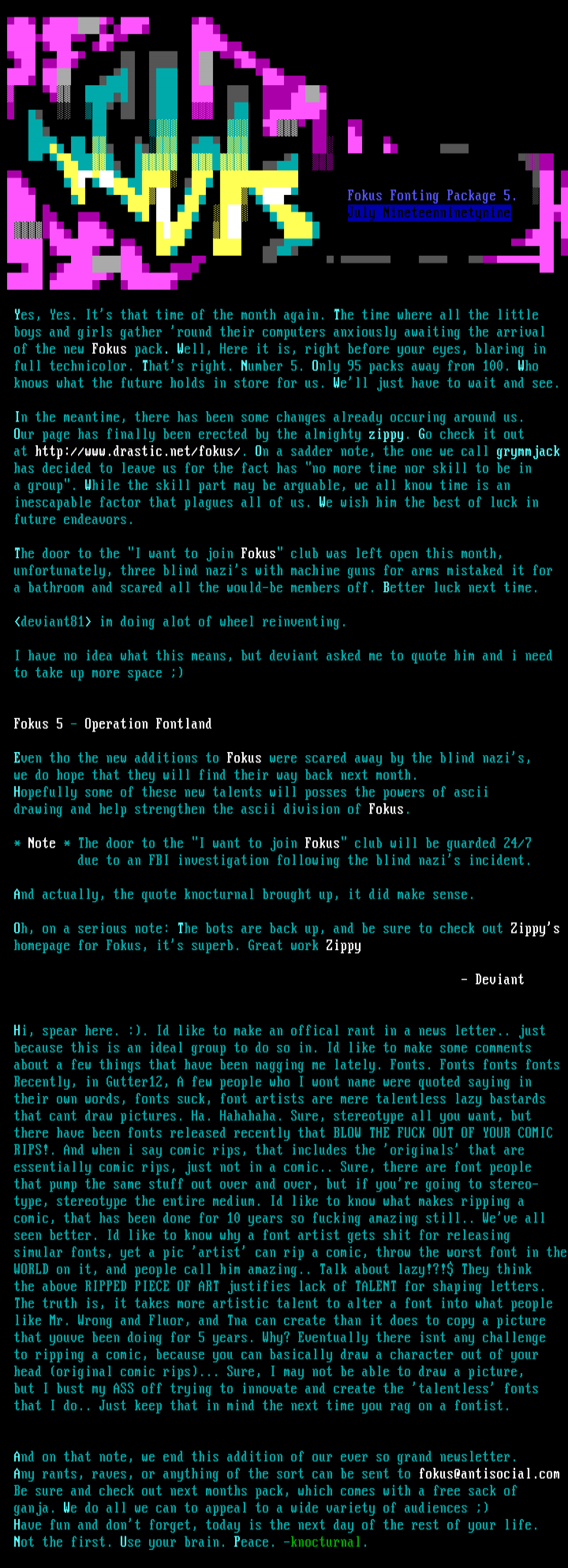 Any rants, raves, or anything of the sort can be sent to fokus@antisocial.com