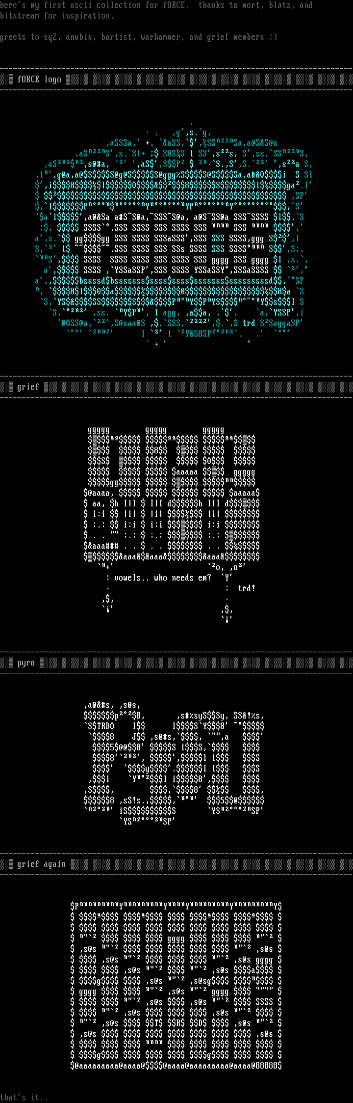 heres my first ascii collection for fORCE. thanks to mort, blatz, and