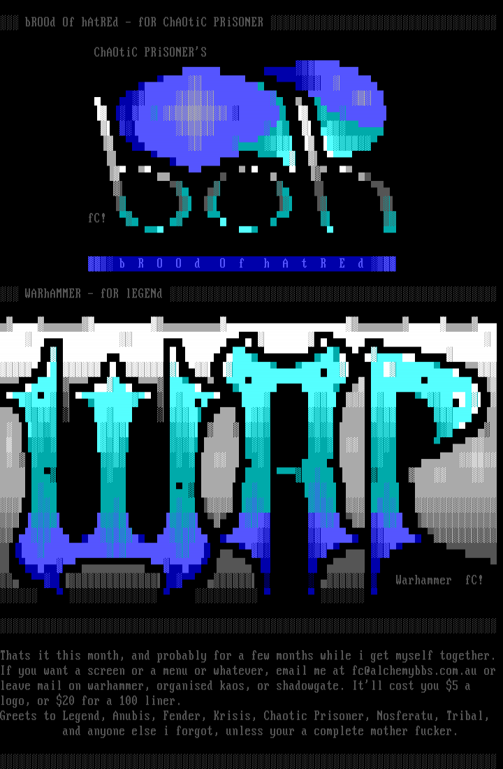 Greets to Legend, Anubis, Fender, Krisis, Chaotic Pris