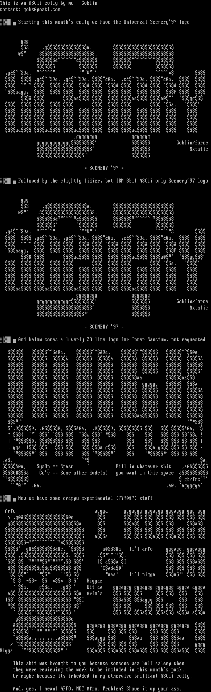 Followed by the slightly tidier, but IBM 8bit ASCii only Scenery97 logo