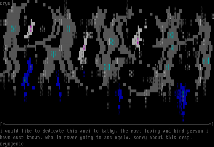 i would like to dedicate this ansi to kathy, the most loving and kind person i