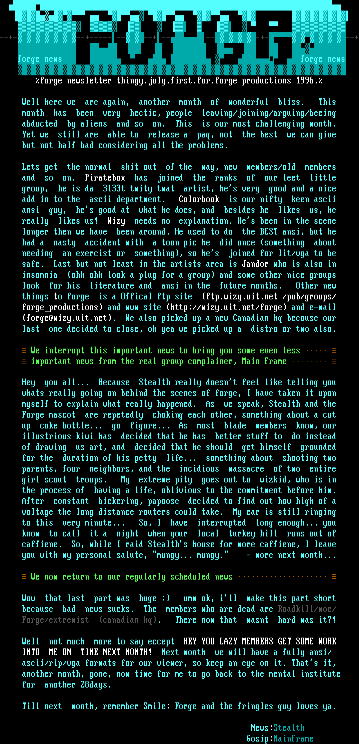 forge newsletter thingy.july.first.for.forge productions 1996.