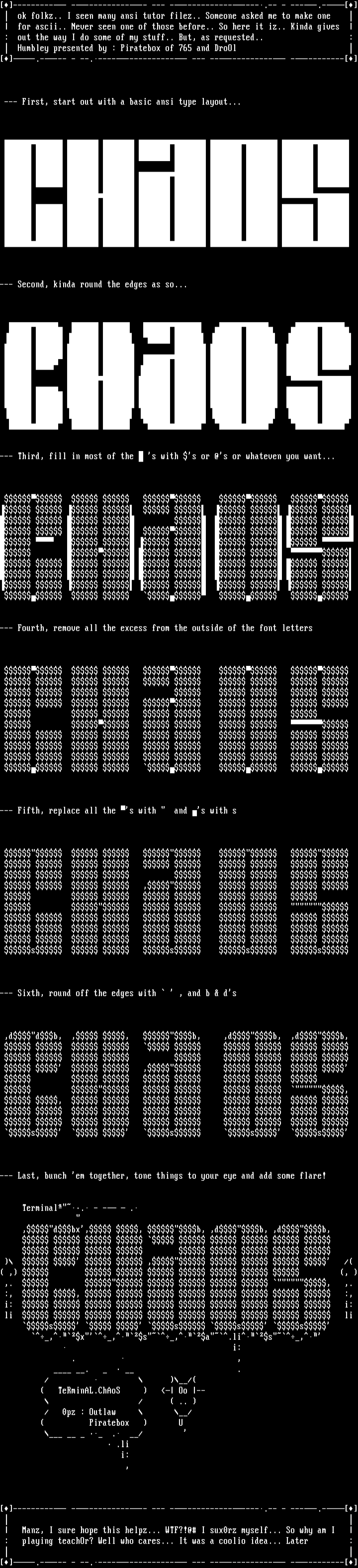 ---------- ------------- --- ----------------.-- - ----.- ok folkz.. I seen many ansi tutor filez.. Someone asked me to make one