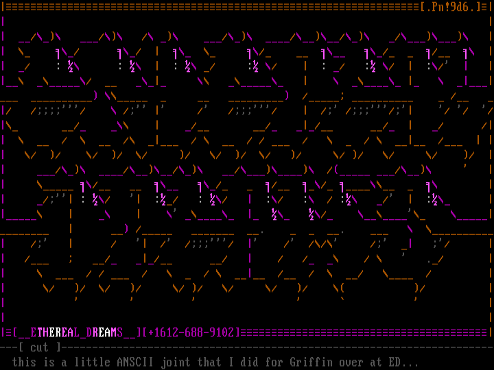 .Pn!9d6. / / / / // / / / / / / / : : : / : / : / : / :/ / / / / // / / // / // / / / / / / / / / / / / / / / / / / / / / / / / / / / / / / / / / / // / / / / / / / / : / :/ : / :/ : / : / : / / . . / / / // / // / / / / / / / / / ./ / / / / / / / / / / / / / / / / / / ETHEREALDREAMS+1612-688-9102--- cut ---------------------------------------------------------------------- this is a little ANSCII joint that I did for Griffin over at ED...