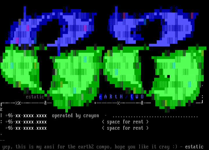 yep, this is my ansi for the earth2 compo, hope you like it cra