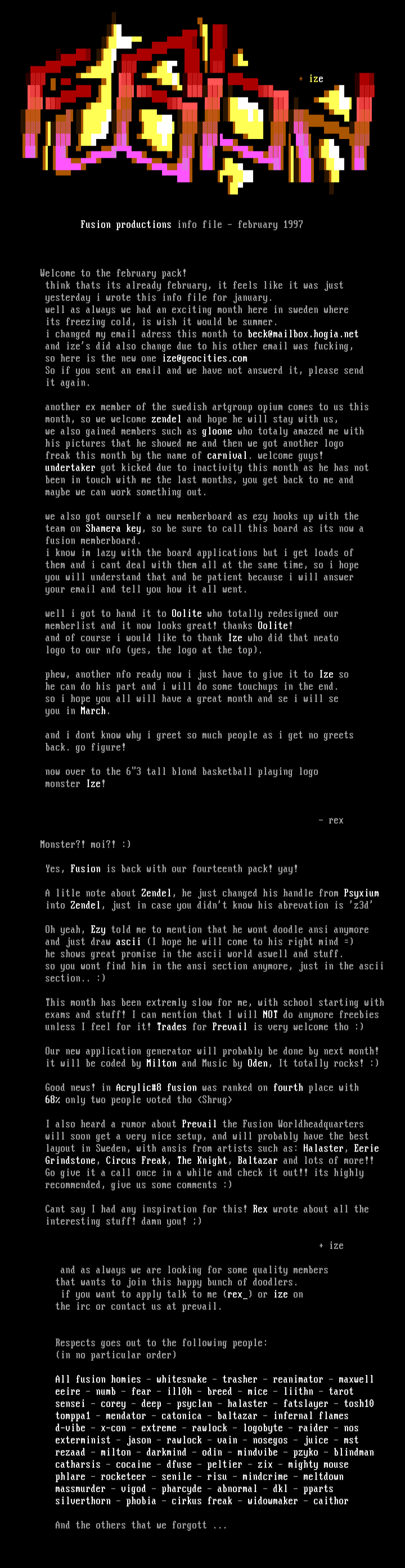 Fusion productions info file - february 1997