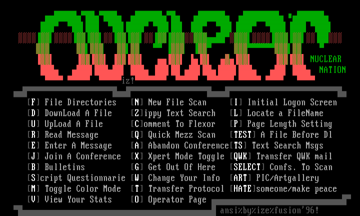 J Join A Conference X Xpert Mode Toggle QWK Transfer QWK mail