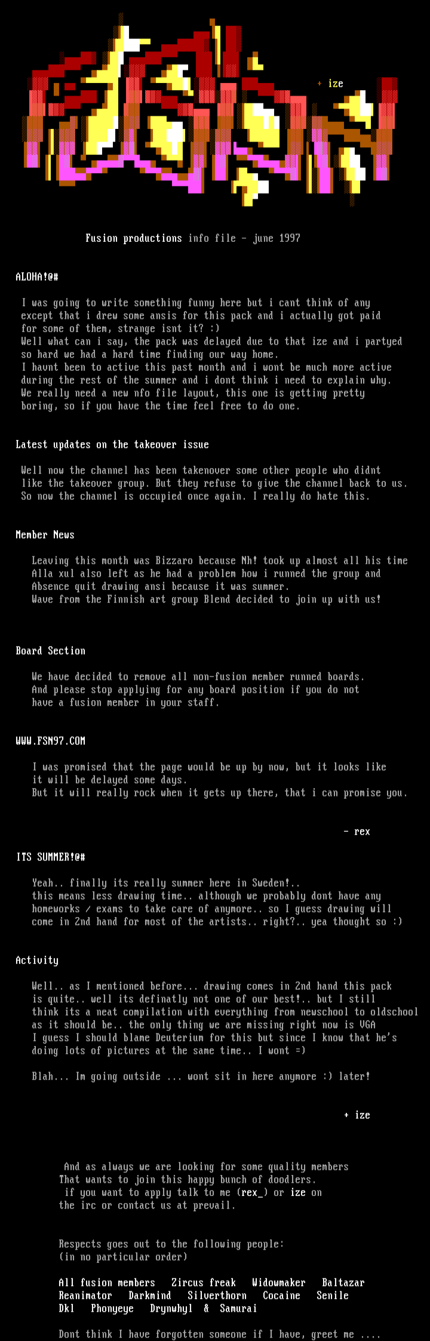 Fusion productions info file - june 1997