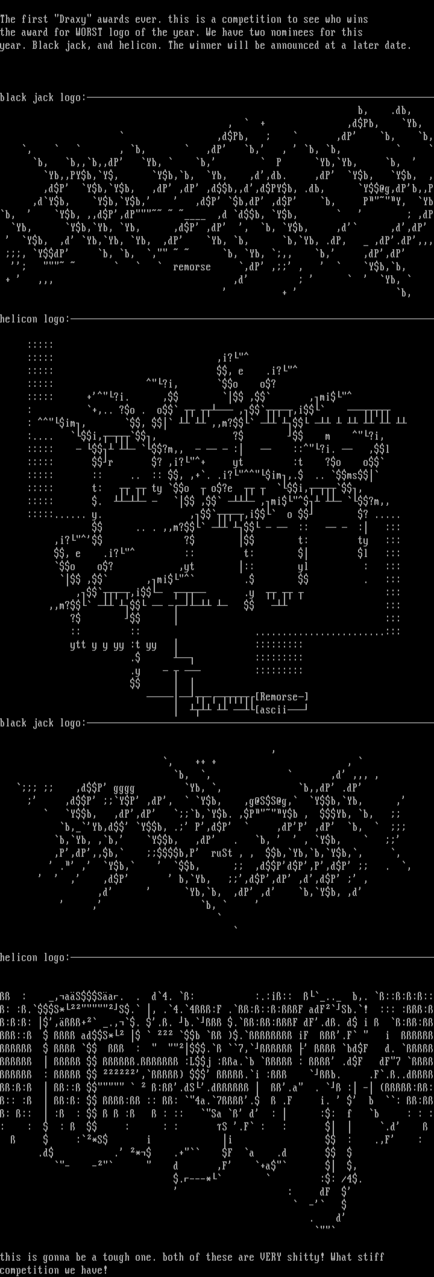 year. Black jack, and helicon. The winner will be announced at a later date.