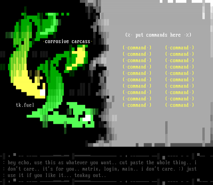 - + -- -- - - + -- ---- - - : hey echo, use this as whatever you want.. cut paste the whole thing.. i