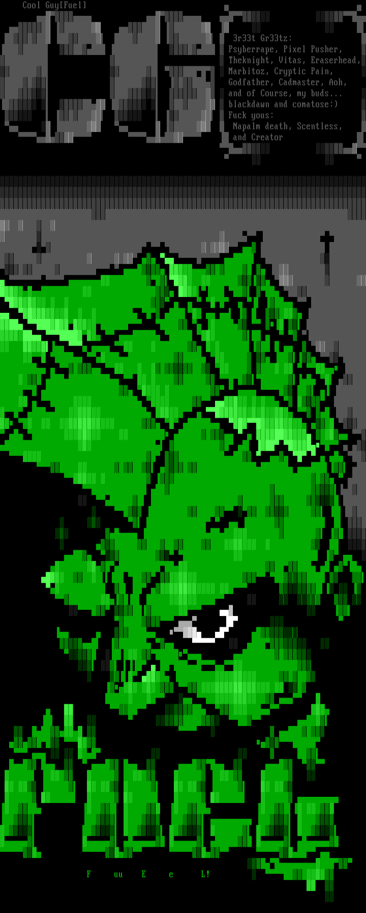 3r33t Gr33tz: Psyberrape, Pixel Pusher, Theknight, Vitas, Eraserhead, Marbitoz, Cryptic Pain, Godfather, Cadmaster, Aoh,