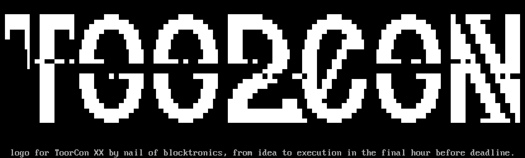 logo for ToorCon XX by nail of blocktronics, from idea to execution in the final hour before deadline.