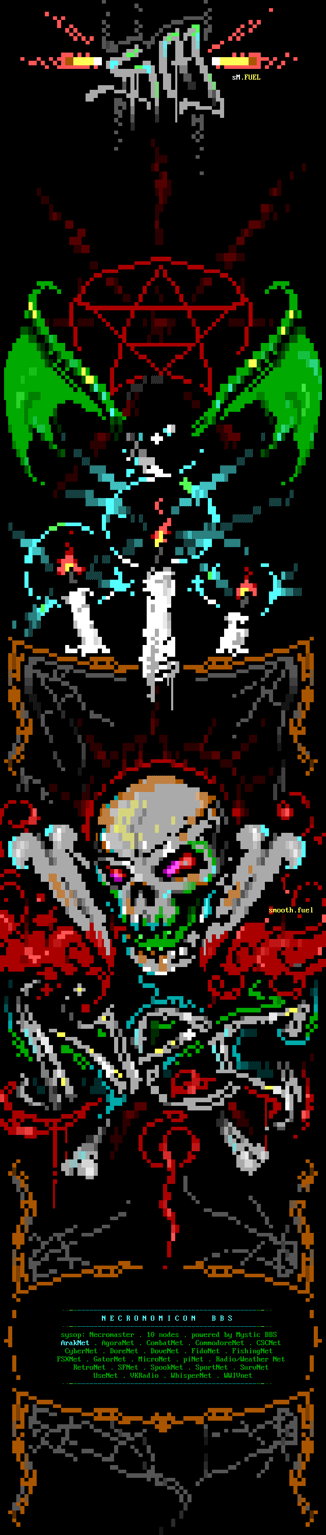 sysop: Necromaster . 10 nodes . powered by Mystic BBS