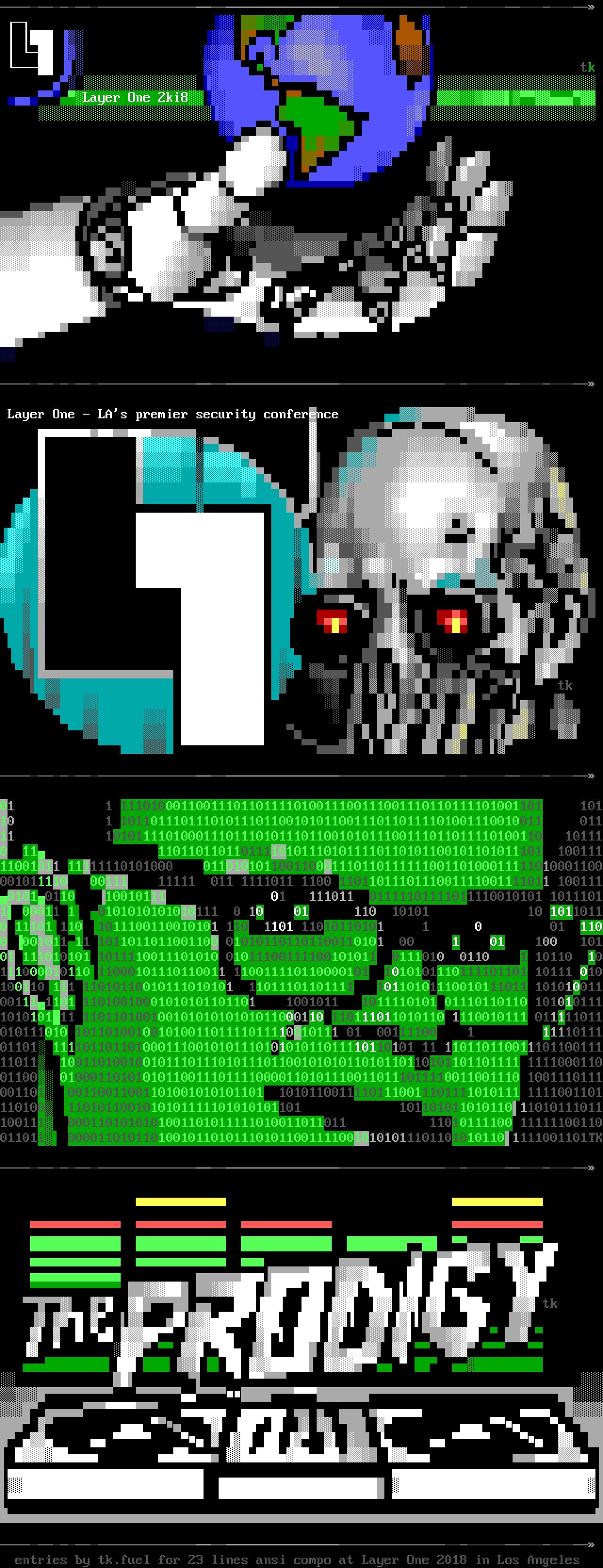 entries by tk.fuel for 23 lines ansi compo at Layer One 2018 in Los Angeles